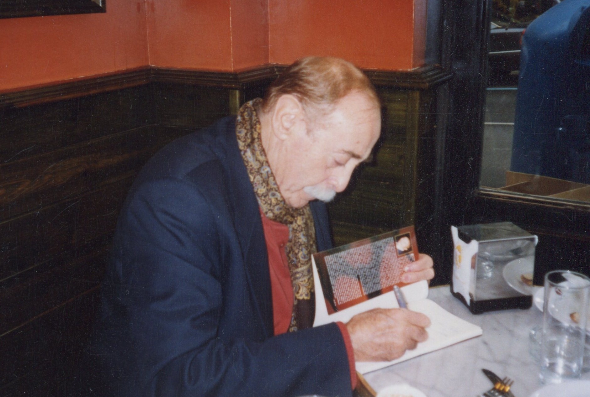 Tundidor firmando su antología ‘La tierra que más amo’, en el antiguo Café di Roma (foto de A. P. Alencart)