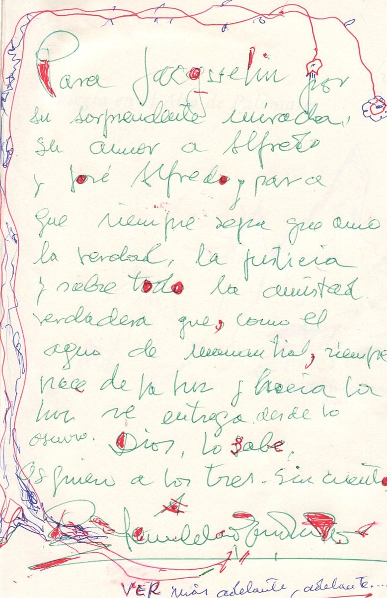 Raptada para siempre su imagen por las pinceladas vivas del pintor Miguel Elías, ahí lo tenemos en su única presencia, cantando por su cuenta sin abrir los labios, mirando a la izquierda de Dios padre porque le sobra espacio y potencia, porque cuando mira da a luz y nace el deseo y las cerbatanas y el purgatorio de la tristeza más desasida. También la gran temperatura donde las visiones nunca podrán ser decapitadas.