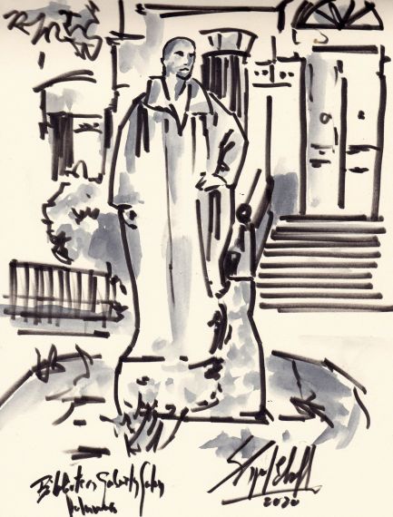 Estatua de Gabriel y Galán en Salamanca. Dibujo de Miguel Elías