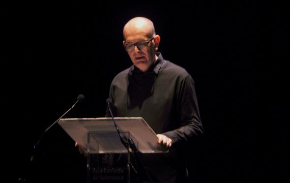 Juan Carlos Martín Cobano leyendo en el Teatro Liceo de Salamanca (foto de José Amador Martín)
