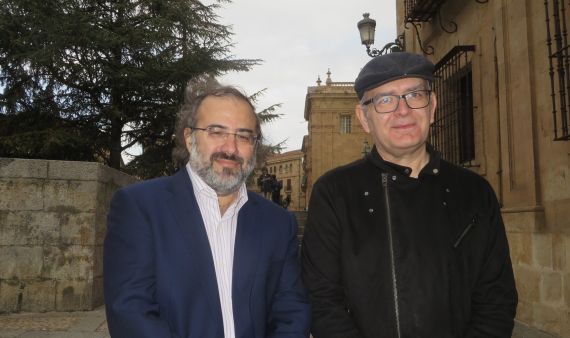 Alfredo Pérez Alencart y Juan Carlos Martín Cobano, por la Plaza de Anaya (foto de Jacqueline Alencar)