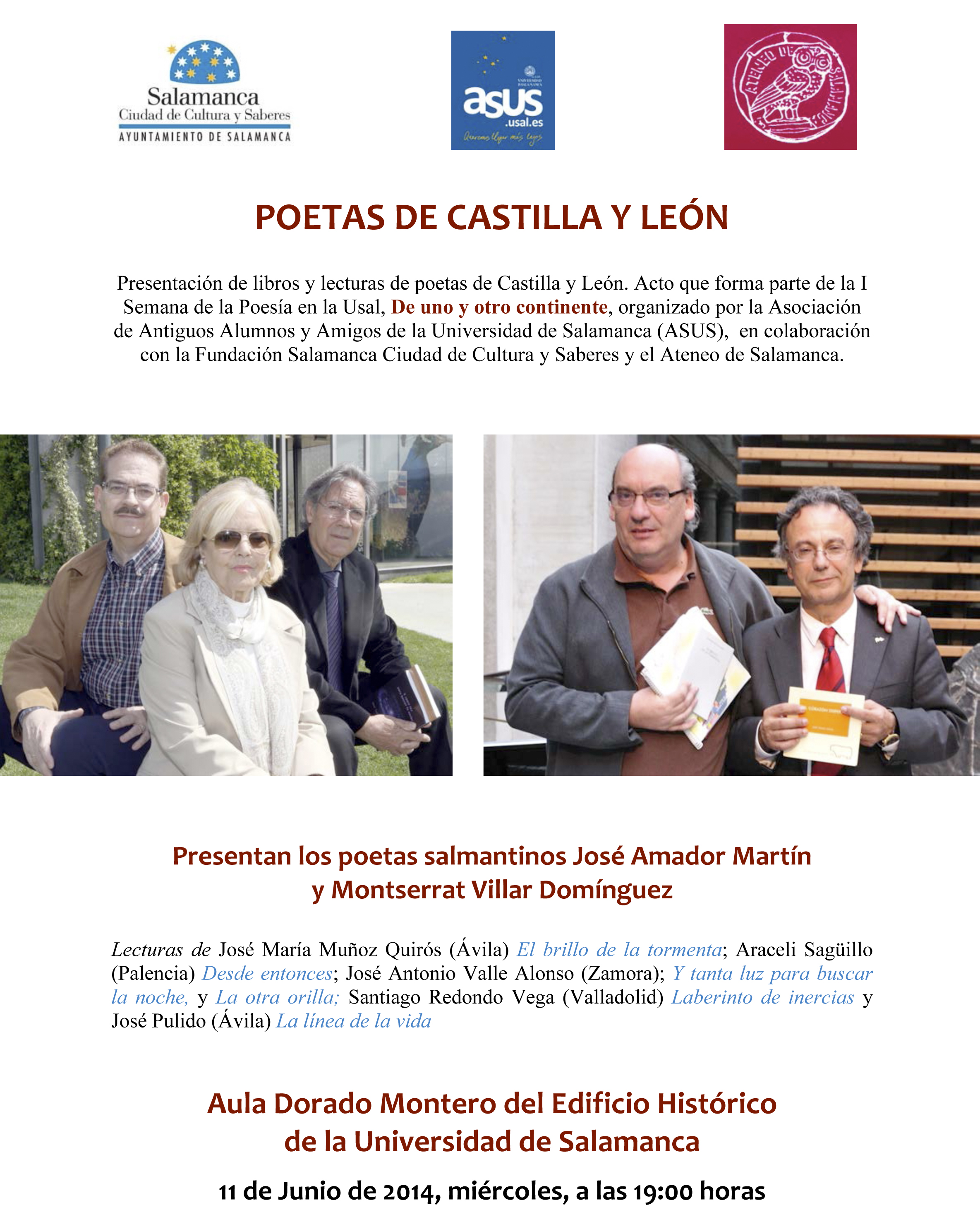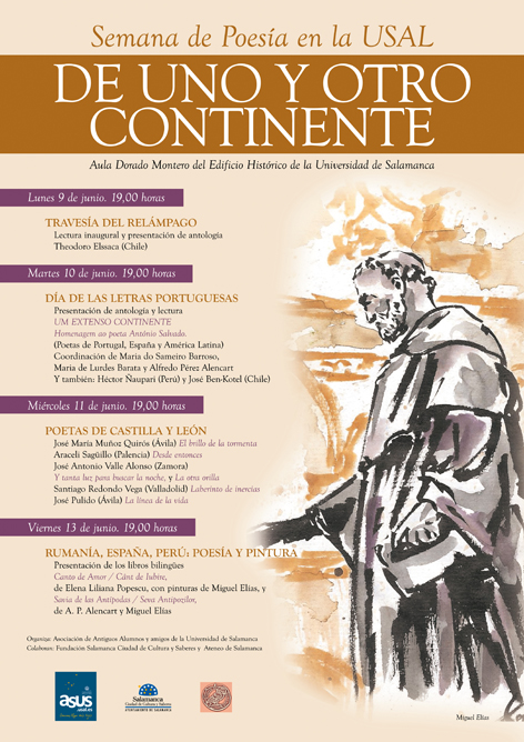 La “Semana de la Poesía en la Usal” se desarrollará del 9 al 13 de junio en el aula Dorado Montero de las Escuelas Mayores y contará con la presencia de relevantes poetas de España, Portugal, Rumanía y Perú. La actividad está organizada por la ASUS y cuenta con la colaboración de la Fundación Salamanca Ciudad de Cultura y Saberes y el Ateneo de Salamanca.