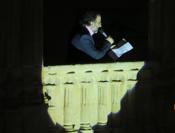 A. P. Alencart leyendo en el claustro del Convento de San Esteban (foto de Jacqueline Alencar, 2016)