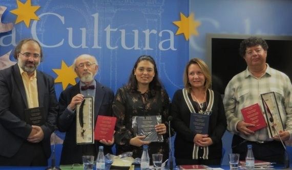 Alencart, Marquina, Di Leo, Iadicicco y Rodríguez, durante ela entrega del IV premio en Salamanca (foto de Jacqueline Alencar)