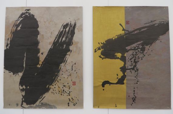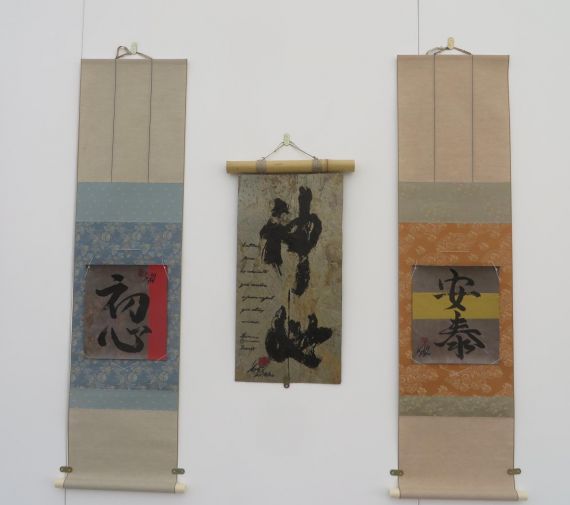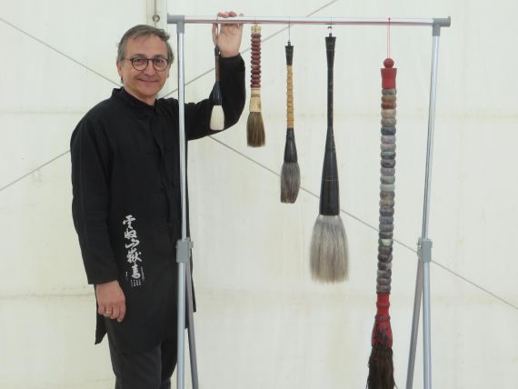 Miguel Elías y sus pinceles japoneses (foto de Jacqueline Alencar)