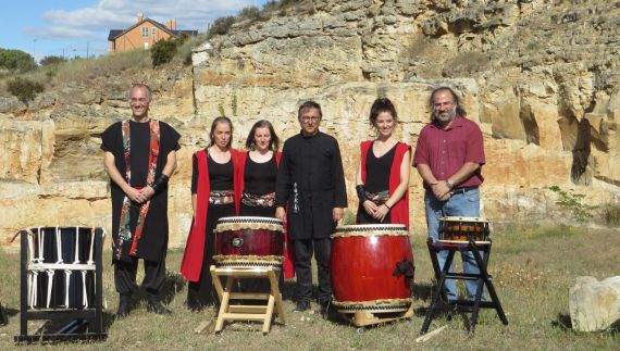 Miguel Elías, el grupo Taiko Mon y A. P. Alencart (foto de Jacqueline Alencart)