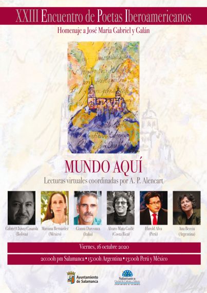 Alfredo Pérez Alencart, José María Sánchez Terrones (rapsoda), Carlos Aganzo, Emilia González Fernández, Carmen Prada Alonso, Benito González, Elena Díaz Santana, Zeljka Lovrencic, José Amador Martín, Xenaro Ovín, Verónica Amat, Enrique Viloria Vera, Juan Velasco Plaza, Isaura Díaz de Figueruelo, Aída Acosta, Álvaro Alves de Faria, Ana S. Díaz de Collantes, Araceli Sagüillo, Enrique Villagrasa, José Antonio Valle Alonso, José María Muñoz Quirós, Julián Martín, Julio Collado, Leonor Martín Merchán, Mónica Velasco,Santiago Redondo Vega, Asunción Escribano, Soledad Sánchez Mulas, Tomás Acosta Píres, Victor Oliveira Mateus. Entrega del VII Premio Internacional de Poesía ‘Pilar Fernández Labrador’: P. F. Labrador, Dennis Ávila Vargas y Marcelo Gatica. También podrán escuchar las magníficas interpretaciones de le grupo musical Concierto3 hizo de dos poemas de Gabriel y Galán y de Lorca.