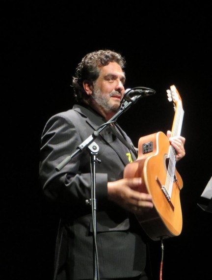 Concierto 3, grupo salmantino que lidera el poeta y cantautor Ángel Luis Delgado, suma su exquisita forma de interpretar la obra de poetas destacados (Neruda, Lorca, Juan de la Cruz, Baquero, Fray Luis de León…). El grupo salmantino actuó en el Teatro Liceo los días 7 y 8 de octubre, musicando versos de León Felipe y de Juan Ruiz Peña, a cuyas figuras estuvo dedicado el XVIII Encuentro de Poetas Iberoamericanos, bajo el epígrafe “He muerto… y he resucitado”. En el caso de Ruiz Peña se celebró el primer centenario de su nacimiento. En sus actuaciones interpretaron, el día 7, ‘Como aquella nube blanca’ y ‘Sé todos los cuentos’, de León Felipe. El segundo día cantaron ‘El alma está en la materia’, de Juan Ruiz Peña; ‘Romance de la Luna’, de Lorca, y ‘En el principio’, de Blas de Otero.
