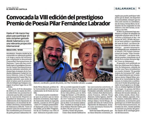 VIII Premio Pilar Fernández Labrador (noticia en El Norte de Castilla)