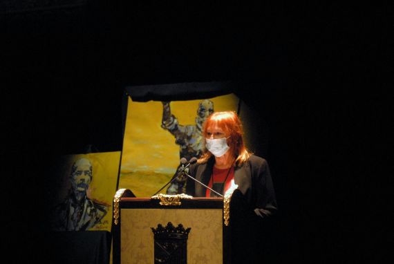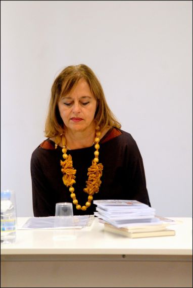 Zeljka Lovrencic leyendo en el Teatro Liceo una de sus traducciones de Gabriel y Galán (foto de José Amador Martín)