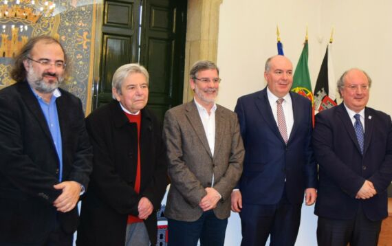 Víctor Oliveira Materus, miembro del jurado del Premio, con Antonio Salvado, Pedro Salvado y Carlos d’Abreu, en Salamanca