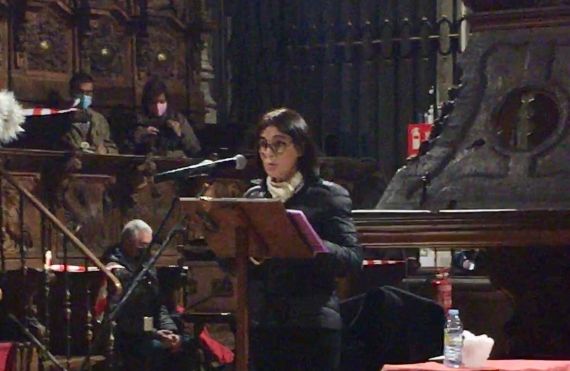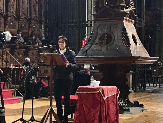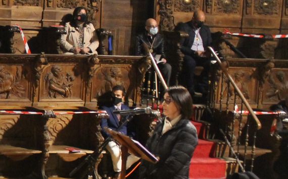 Elena Díaz Santana durante su lectura en la Catedral de Salamanca