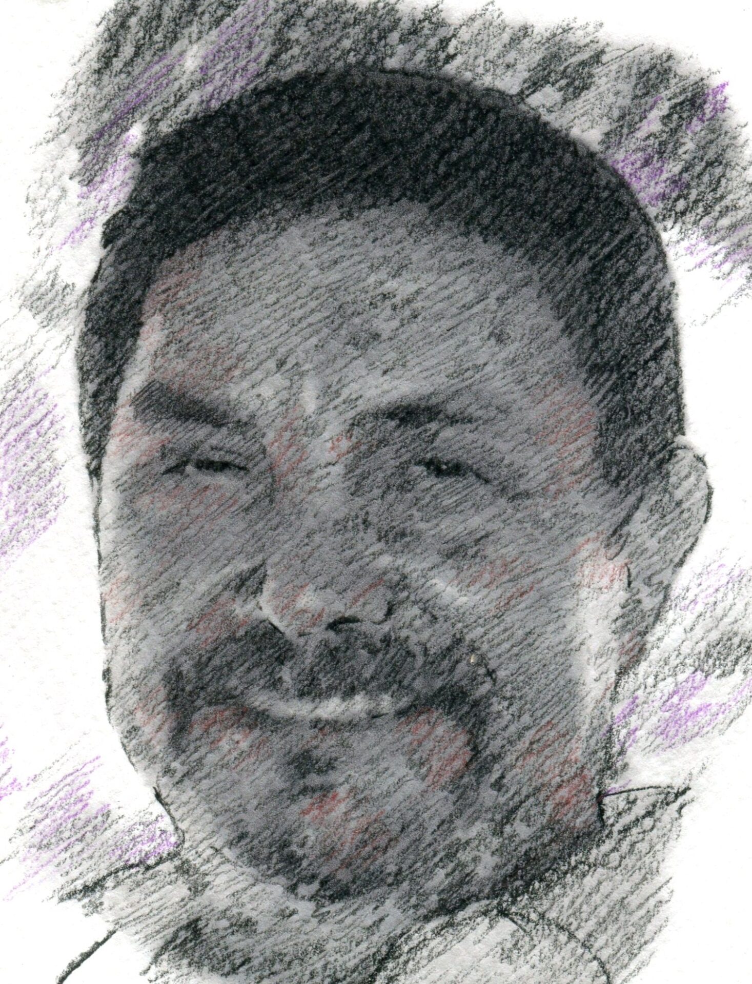 Ante retrato de León Felipe hecho por Miguel Elías.