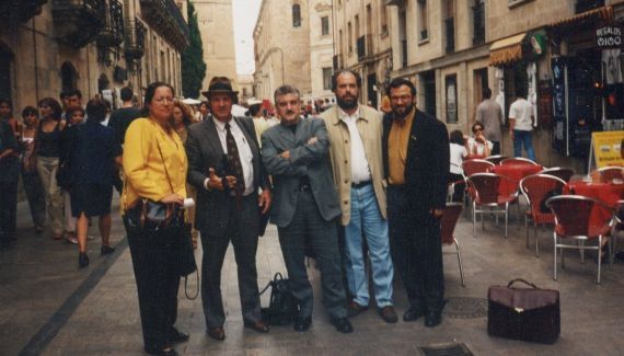 Ismael Sambra y su esposa, González Quesada, Lázaro y Alencart, en la Rúa Mayor