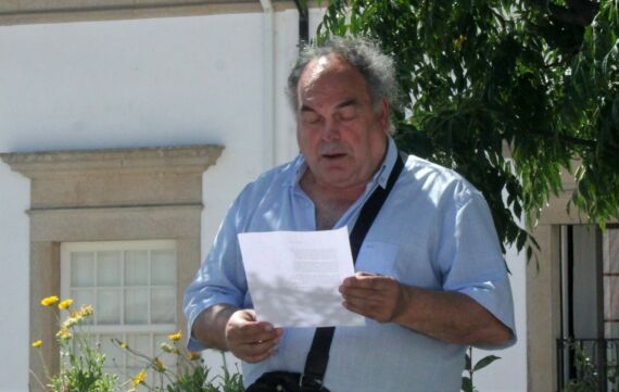 José Amador Martín leyendo en la Ermida da Senhora de Mércules, durante la ceremonia inaugural del Encuentro