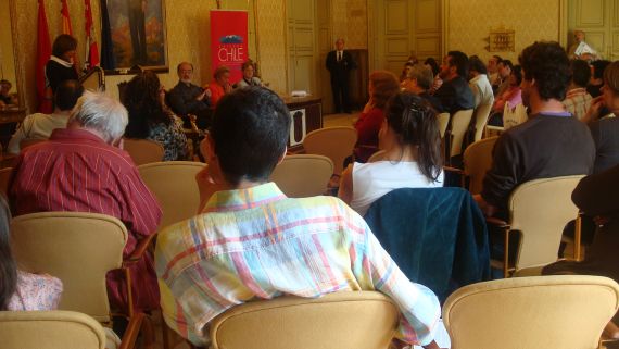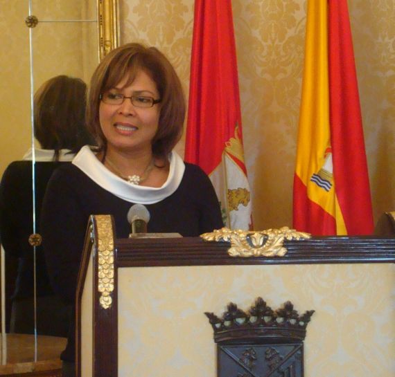 Maritza López-Lasso leyendo en el Salón de Recepciones del Ayuntamiento de Salamanca