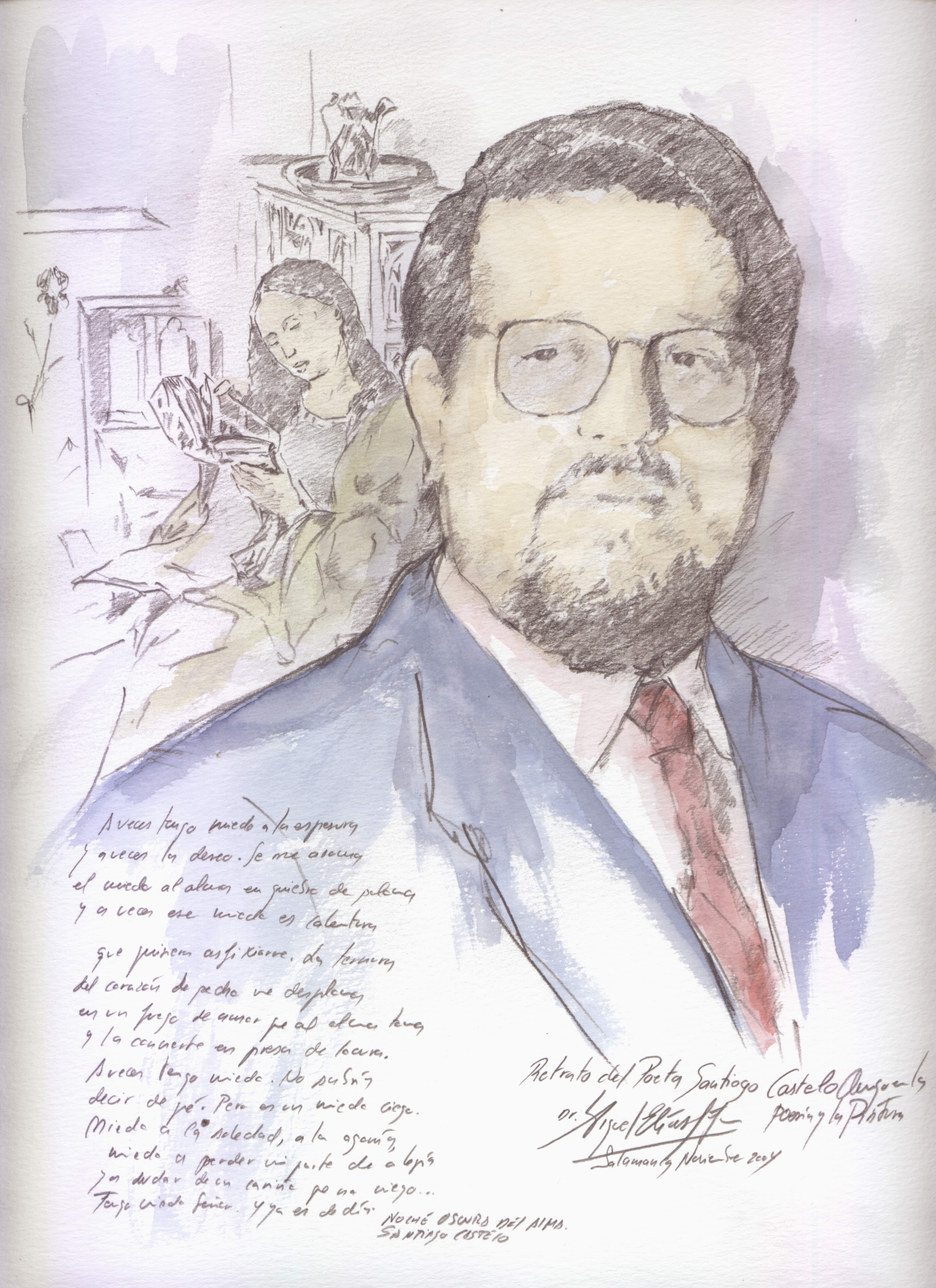 Santiago Castelo (Badajoz, 1948), poeta y periodista (hasta su reciente jubilación, subdirector de ABC desde 1988), es Presidente de la Academia de Extremadura. Premio de Poesía Fastenrath de la Real Academia española en 1982, cuenta con una sólida obra poética con títulos como Tierra en la carne, Memorial de ausencias, Monólogo de Lisboa, La sierra desvelada, Cruz de Guía, Cuaderno del Verano, Cuerpo cierto, La huella del aire, Quilombo, La hermana muerta, Esta luz sin contorno, hasta su más reciente publicación, la antología Como disponga el olvido.