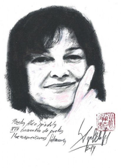 Alice Spíndola (Ponte Nova, Minas Gerais, 1940). Licenciada en Letras Anglo-Germánicas por la Universidad Católica de Goiás, poeta, cuentista y ensayista, radicada en Goiás desde 1951, desde donde viene escribiendo una obra por la que ha recibido el Premio Nacional Jorge Fernandes (Río de Janeiro), el Premio Auta de Souza (Río Grande do Norte) o el Premio Internacional de Literatura Brasil – América Hispánica (Belo Horizonte), por citar algunos. Entre sus libros publicados están: Fio do laberinto (1996); A chave do Vidro (2001); O Loire – poema fluvial da França (2006); O Araguaia, rio e alma de Goiás (2008), Cincuenta poemas escolhidos pelo autor (2009, antología); Asa da Espiritualidade – Obras de António Salvado (2010, Impressões de Leitura) y Versek / Poemas (2011, en húngaro y portugués) y Bajo el zumo del tiempo (2015). Versos suyos han aparecido en antologías brasileñas y en otras editadas en Francia, España, Cuba, Alemania, Holanda, Canadá y Portugal.