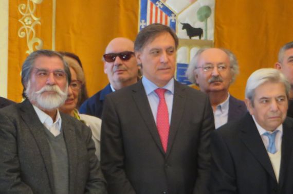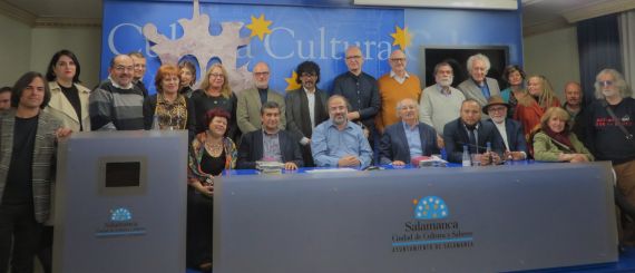 Iván Oñate, Carlos García Carbayo (Alcalde de Salamanca) y el maestro António Salvado. Atrás, Pilar Fernández Labrador, Muñoz Quirós y Antonio Colinas (foto Jacqueline Alencar)
