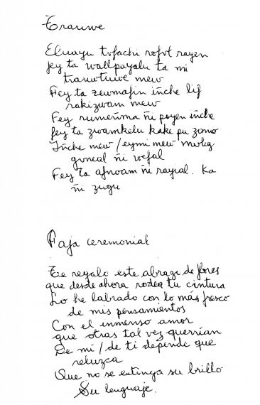 “Crear en Salamanca” tiene el privilegio de publicar algunos poemas de Elicura Chihuailaf Nahuelpan (Kechurewe, Sur de Chile, 1952), quien hace pocos días obtuvo el Premio nacional de Literatura de su país, un premio muy reñido siempre y siempre difícil de alcanzar, máxime para quienes se encuentran las márgenes o están en las antípodas de los círculos literarios más afectos al poder político. A lo largo de estos años, y a pesar de su reticencia, a Elicura Chihuailaf le han otorgado varios y prestigiosos premios en su país: Premio Mejor Obra Literaria (poesía), Consejo Nacional del Libro y la Lectura. Santiago, 1994; Premio Municipal de Literatura (poesía), Municipalidad de Santiago, 1997; Mención Premio Municipal de Literatura (ensayo), Municipalidad de Santiago, 2000; Premio Mejor Obra Literaria (ensayo), Consejo Nacional del Libro y la Lectura, 2000. Sus publicaciones, tanto en mapuzugun como en castellano, son: El invierno y su imagen (1977); En el País de la Memoria (1988); Marta Lefimil (testimonio,1990); El invierno, su imagen, y otros poemas Azules (1991); Au Nord, Traducción al castellano de la poesía de Gabriele Milli (1993); De Sueños Azules y contrasueños (1995); Todos los cantos / Ti kom vl (antología y versión al mapuzugun de la poesía de Pablo Neruda, 1996); Muestra de Oralitura Indígena de América (1997); Recado confidencial a los chilenos (ensayo,1999); Hablando en el espíritu Azul de mi Gente (caset, 2003; Kallfv / Azul (con ilustraciones de Gabriela Cánovas, 2006; Canto Libre / Lliz lkantun (Selección y versión al mapuzugun de la obra de Víctor Jara, 2007; Historia y luchas del Pueblo Mapuche, ECh y otros (Le Monde Diplomatique, 2008); Sueños de Luna Azul (2008); Poesía y prosa chilena (para estudiantes) / Vlkantun ka epew Chilemapu mew (dos tomos, edición en preparación por el Ministerio de Educación).