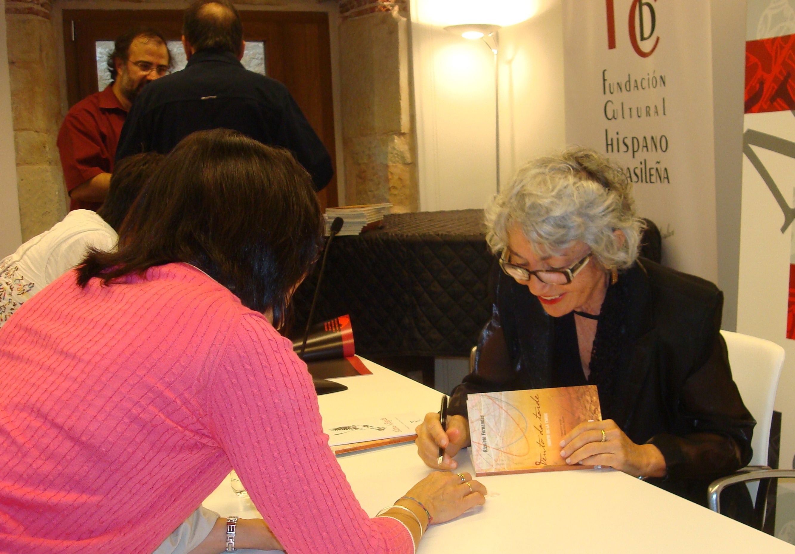 Rizolete Fernandes firmando libros en el centro de Estudios Brasileños de la Usal