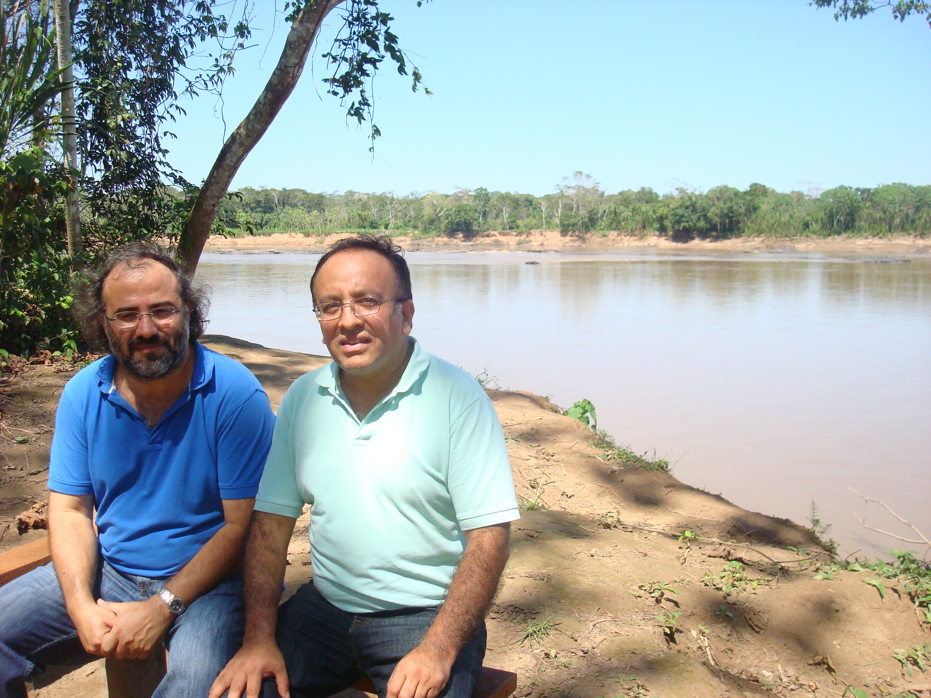 Alencart con su amigo y editor Aldo Gutiérrez, en el río Tambopata (2014)