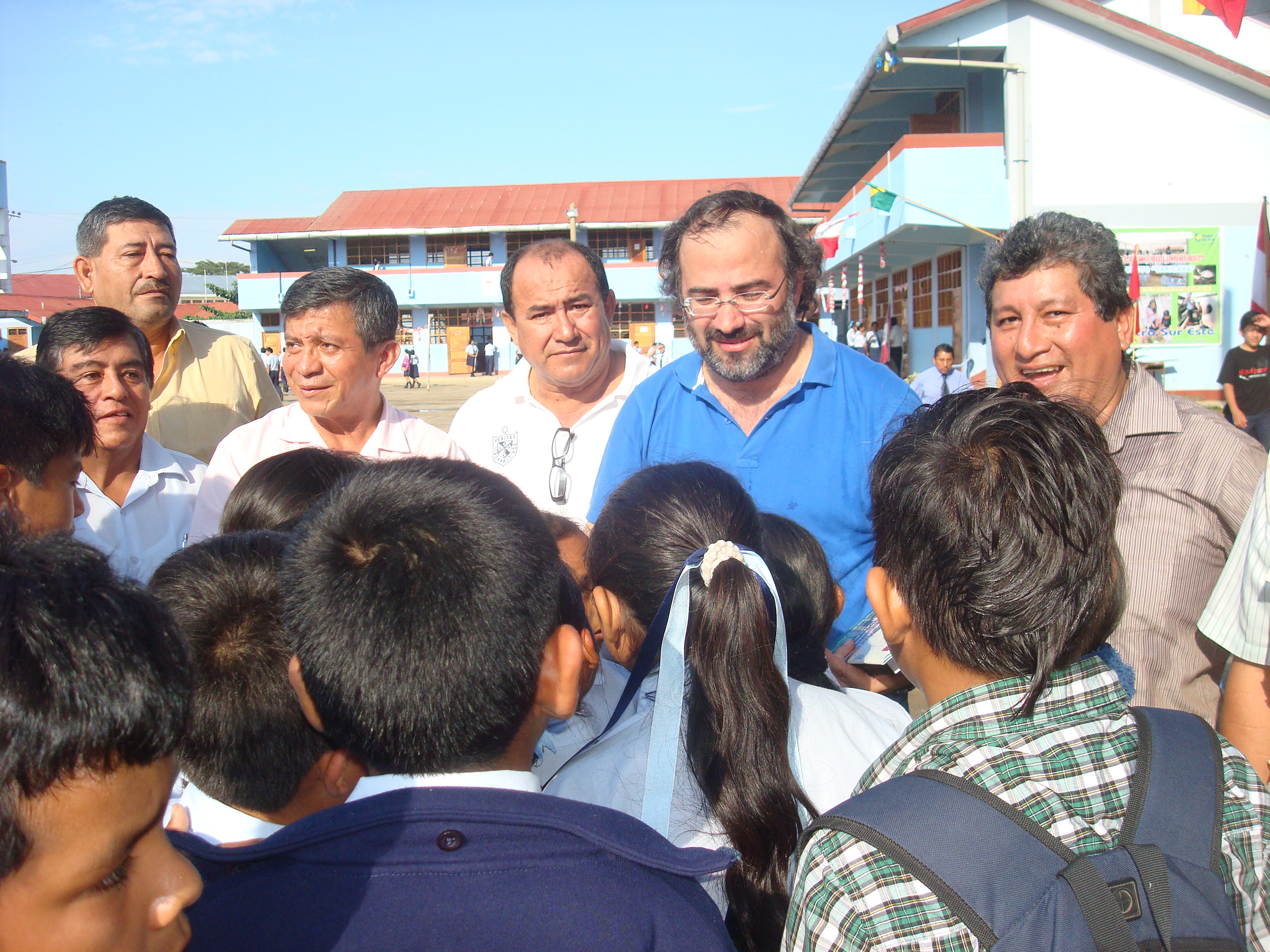 Con alumnos y compañeros del colegio Guillermo Billinghurst, donde terminara su secundaria en 1978