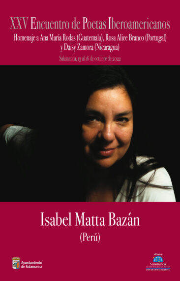 Crear en Salamanca tiene la satisfacción de publicar cuatro poemas de Isabel Matta Bazán, los cuales saldrán en la antología ‘Poiesis en Helmántica’, del XXV Encuentro que se celebrará el mes de octubre. Isabel Matta Bazán (Lima, 1971), es licenciada en Educación por la Universidad Nacional Mayor de San Marcos y bachiller en Comunicación Social. Se formó como profesora en la enseñanza del español como segunda lengua en el Instituto Cervantes y la Universidad Ricardo Palma. Trabajó como redactora y reportera gráfica en el Suplemento Dominical del diario El Comercio y en diversos medios de comunicación. Actualmente se dedica a enseñar español como segunda lengua a personas sordas y a extranjeros. Empezó su trayectoria poética en el año 1989 y a comienzos de los 90 participó en el Grupo poético Neón. Posteriormente fue miembro del grupo “Rara Avis”. En el 2016 presentó su exposición fotográfica “La Belleza del Perú” en Gifu, Japón. Tiene publicados los poemarios: “Soledad Nuestra” (1999), “Reina Moribunda” (2005) y “Últimas Moradas” (2021).