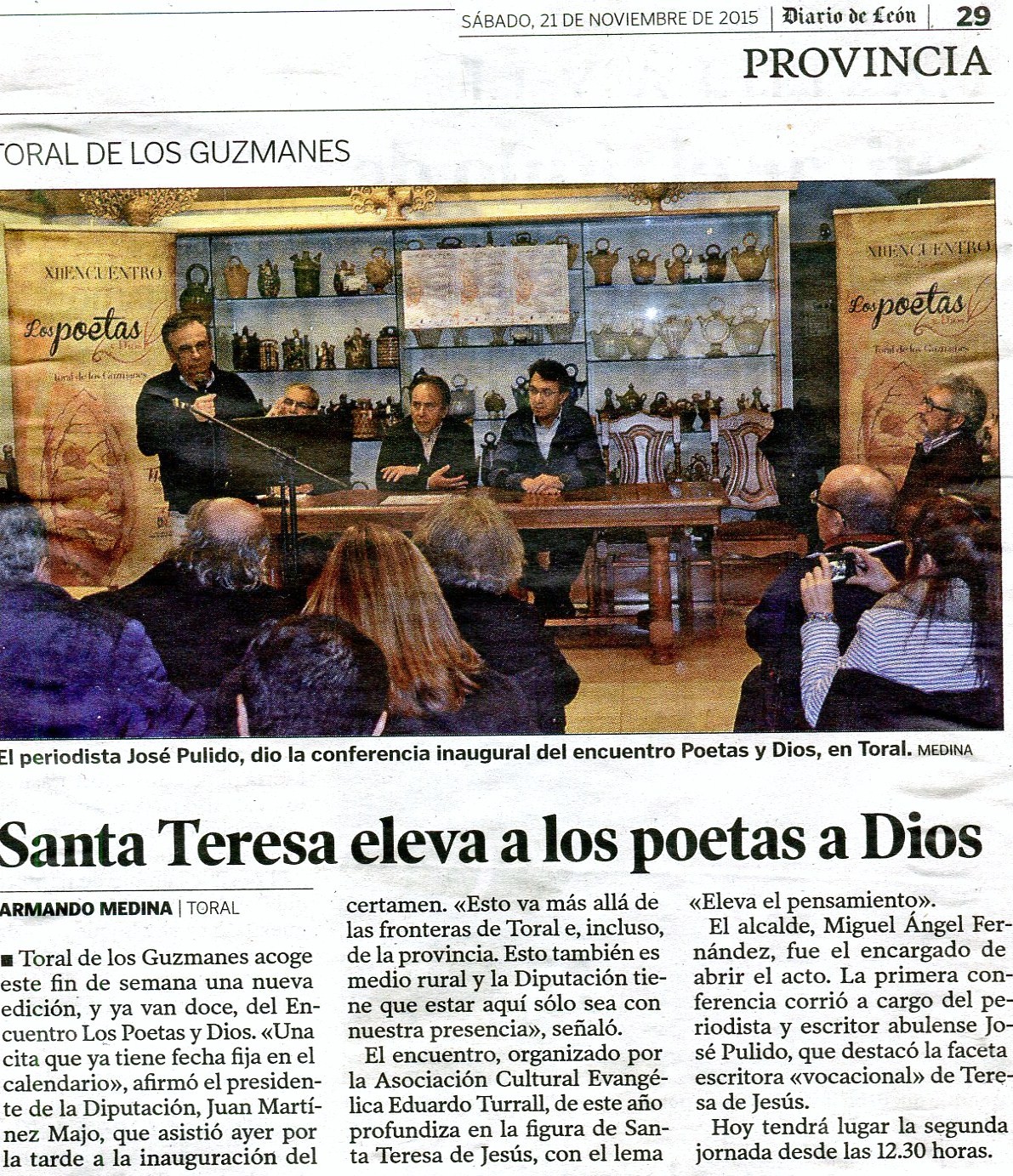 Crear en Salamanca tiene el place de publicar el texto, inédito hasta hoy, que José Pulido, director de Radio Nacional de España en Ávila, pronunció como Conferencia Inaugural del XII Encuentro ‘Los poetas y Dios’, celebrado en el pueblo leonés de Toral de los Guzmanes entre el 20 y 21 de noviembre.