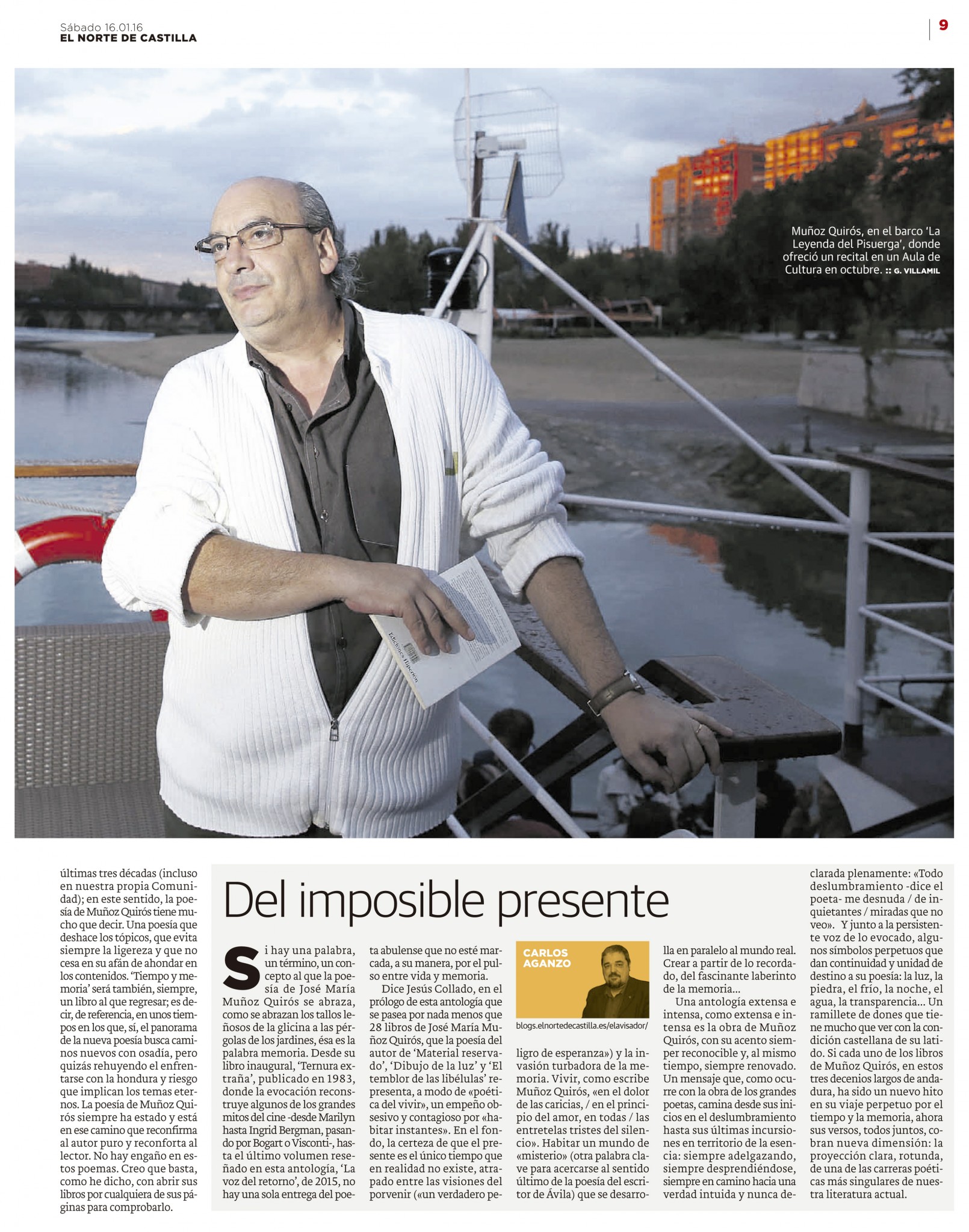 José María Muñoz Quirós, catedrático de Lengua y Literatura en un instituto de su ciudad natal, es Licenciado en Filología Hispánica por la Universidad de Salamanca y Doctor por la Universidad de Valladolid. También es Presidente de la Academia de Artes y Letras de Ávila, Presidente de la Academia de “Juglares de Fontiveros” de poesía y Miembro de la Academia de Poesía de Castilla y León. Director de la revista de artes y letras “El Cobaya”. Es tiempo de hacer memoria y de de ir reconociendo la valiosa obra poética de este autor, además de su extrema generosidad para con los demás poetas a la hora de coordinar encuentros y múltiples publicaciones. Por ello, además de los siete poemas seleccionados de su obra reunida recientemente editada por Vitrubio (que recomendamos leer y atesorar), hemos querido recordar parte de su producción poética y ensayística, así como algunas valoraciones críticas sobre su obra. Hay más, mucho más, como las tesis y ensayos sobre su poesía, las numerosas antologías donde la misma ha sido acogida, etcétera…
