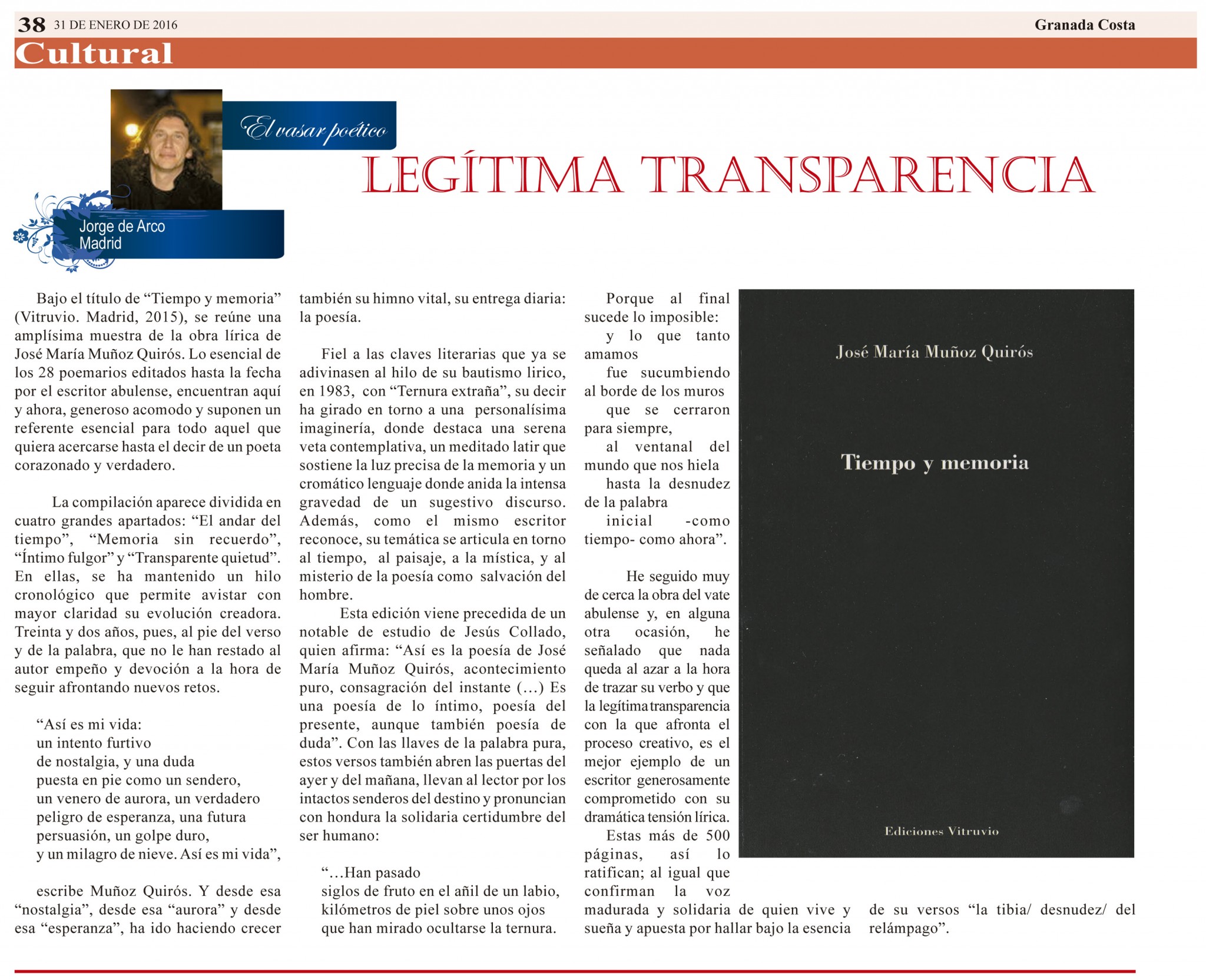 “Esta poética implica, de algún modo, el conocimiento intrínseco del hombre. De un hombre poeta llamado José María Muñoz Quirós, que al cabo es conciencia y testimonio subjetivo consciente de todo lo que le rodea y vive conformando su personalidad y cultura, siendo el objeto más inmediato y principal de su conocimiento y dando sentido al mundo, de su salvación.” JESÚS HILARIO TUNDIDOR.