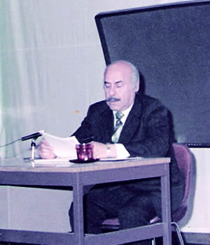Mahfud Massis, gran poeta comprometido con la realidad que le tocó vivir y con sus ancestros. Recordamos su labor sindical en la Sociedad de Escritores de Chile. También tuve la oportunidad de brindarle un discurso de despedida en el Club Palestino cuando fue nombrado agregado cultural de Chile en Venezuela y, años más tarde alejados de nuestra patria, participamos en Irak acompañados de un traductor en un recital ofrecido en el maravilloso anfiteatro milenario de Babilonia. Sus versos tienen un ímpetu arrollador y dramático, aunque, quizás, con un tono muy personalista. Al respecto, incluyo unos breves poemas poderosos sobre su origen árabe, colocados muy acertadamente en esta valiosa antología de Rafide: “DESNUDO / Al pie de esta cordillera desnuda y blanca. / Yo, / Mahfud Massis, cuajo de Palestina en el Continente Americano / habitante del tercer mundo, / del tercer ojo, / de esta luna vacía, / alzo mi voz como un potro sobre el firmamento oscuro.” Más chileno, más palestino y más latinoamericano no puede ser. Su identificación desgarradora con el medio le da un contenido existencial y desmesurado. Leemos en otro texto igualmente totalizante como identidad y épico-bíblico: “Soy Mahfud, el Esclavo, / el heresiarca de piel negra, / el loco, el desertor, el papanatas helado bajo la nieve. / Escondo mis dientes de cabro, mi cola de rey babilónico, / mientras camino por la ciudad junto al angosto río. / Entre ávido aceite, mi vieja sombra atrabiliaria / atraviesa las ciénagas, / labrando la majestad lunar / con mi oscura casaca de muerte.”