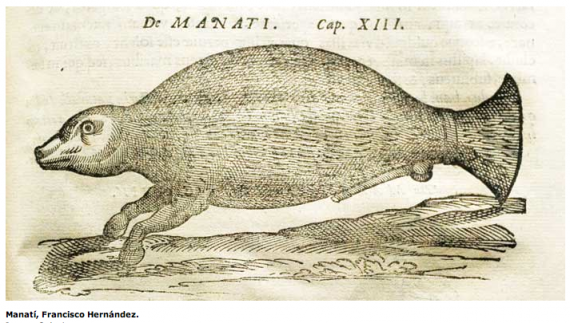 Manatí en Rerum medicarum Novae Hispanae thesaurus, 1651, de Francisco Hernández