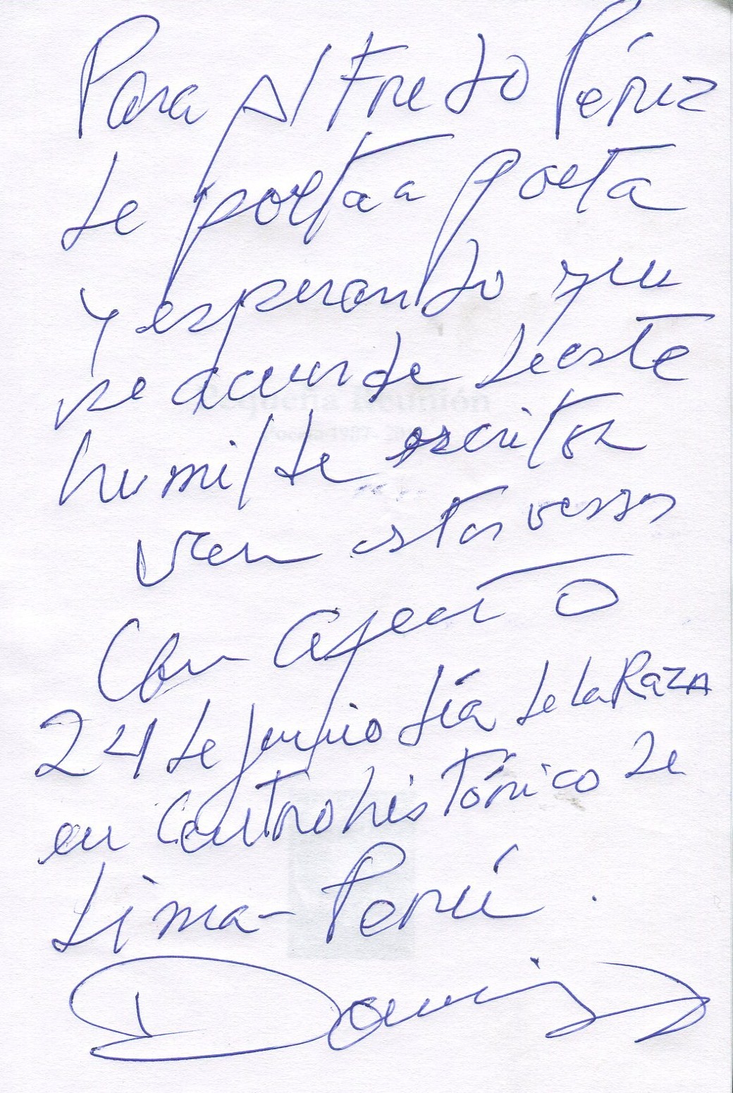Lo de Domingo de Ramos es Poesía escrita sobre el lomo de un caballo desbocado: es original el fósforo que incendia cada versículo suyo, vida íntima de un purgatorio donde recarga la baterías para luego perseguirse a sí mismo, sin hacer concesiones. Vivacidad y mestizaje de un lenguaje que a veces pestañea y otras punza, porque siempre está escrito, genuinamente, desde la llaga. Y si aquí hay una muestra mínima de su Erótika, no se confundan, pues sus varios registros (la fuerza de su totalidad) lo tornan un poeta que desembalsama el castellano y las mestiza con la jerga o las expresiones populares de una Lima sin imposturas. Tito Marro me trajo, hace pocos días, tras pasar dos semanas en la Ciudad de los Reyes, su “Pequeña Reunión. Poesía 1987-2012” (Editorial Dorada Apokalipsis, Lima, 2014). Y también fue Tito Marro quien lo trajo a Salamanca el año 2007, donde lo conocí y pude darle un merecido abrazo.