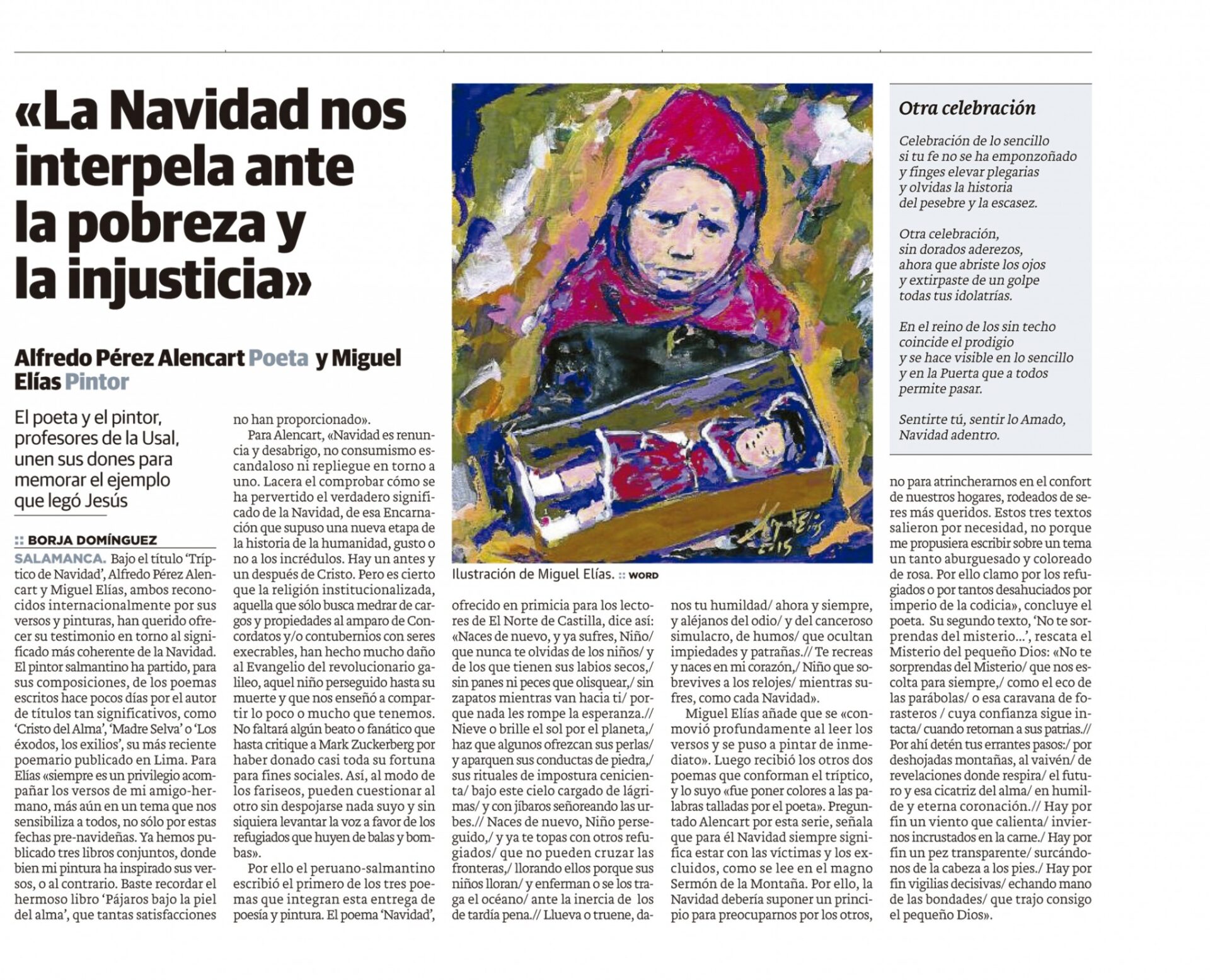 Me alegra comprobar que la Navidad no son sólo compras y turrones. El primer poema es realmente impactante. Alencart es de esos poetas que saben volver mi mirada a la lírica con ética. Hermosas las pinturas.