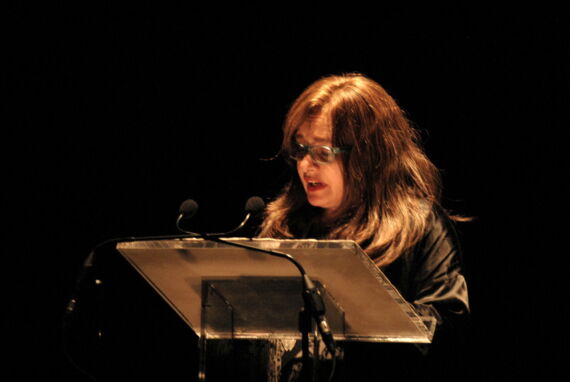 Carmen Nozal leyendo en el Teatro Liceo de Salamanca (Foto de José Amador Martín)