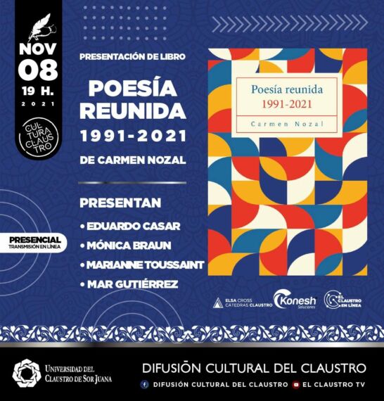 Estos poemas forman parte de Poesía reunida 1991-2021 (Ediciones Mastodonte, Ciudad de México, 2021), volumen que se presentará este 8 de noviembre en el Claustro de Sor Juana, en el DF.
