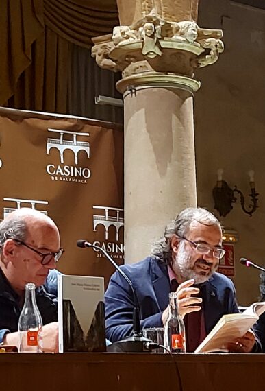 José María Muñoz Quirós, Alfredo Pérez Alencart y Asunción Escribano, en el Casino de Salamanca