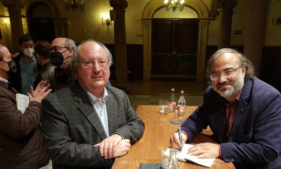 A. P. Alencart dedicando un ejemplar a Enriquue Cabero (foto de Iván Salazar Ríos)