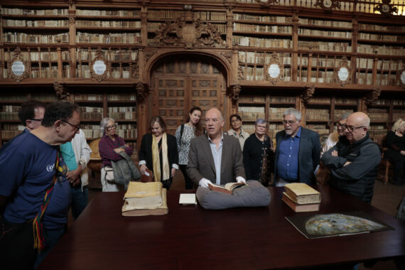 Crear en Salamanca tiene la satisfacción de publicar una muestra de fotografías captadas por el fotógrafo Alex Lorrys, mientras algunos de los poetas invitados al XXVI Encuentro de Poetas Iberoamericanos eran atendidos por el bibliotecario Eduardo Hernández Pérez, quien volvió a ser el magnífico guía para los privilegiados poetas que llegarón a Salamanca de allende el castellano o de otras regiones de España y Portugal. Gratitudes para él y para Margarita Becedas González, directora de la Biblioteca General Histórica de la Universidad de Salamanca, quien estuvo con nosotros para ofrecer la bienvenida. Está en la primera foto.